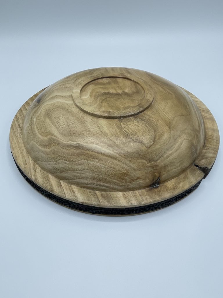 Butternut, I think. Texturized rim then painted with Speedball India ink. Finished with Shellawax which I won’t use anytime soon.