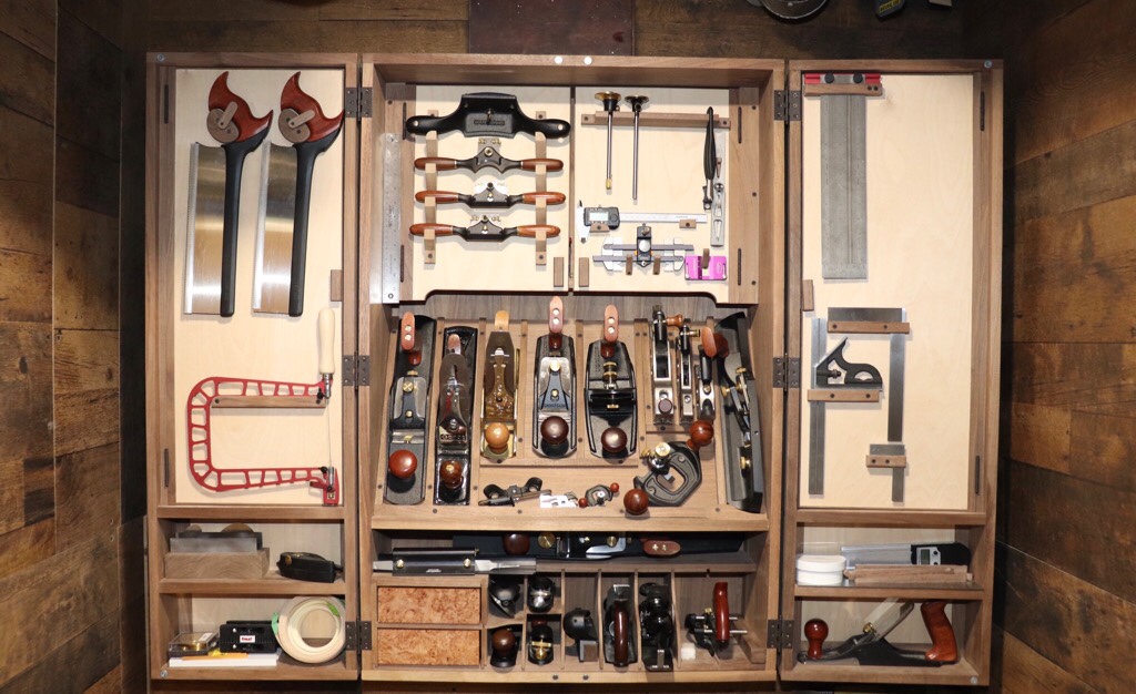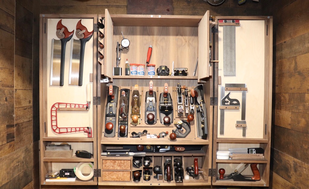 Here is an update of the cabinet. It’s almost finished, there a few more spots for some tools to add to my collection.