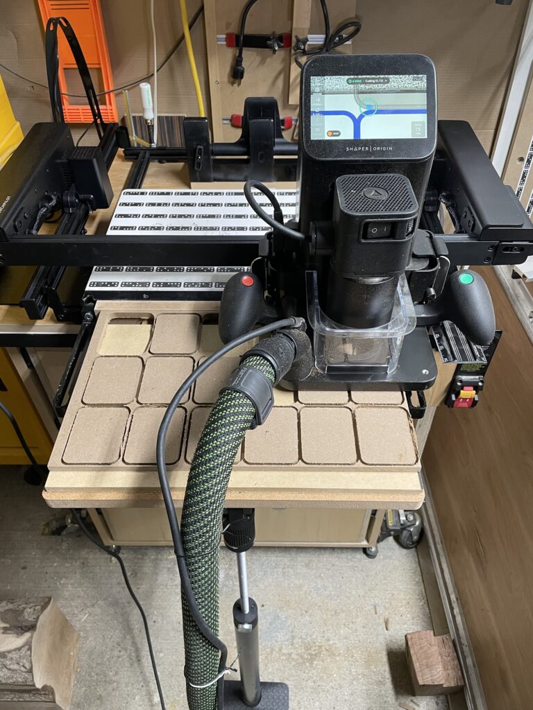 First go at using the @shapertools #origin #benchpilot to make some replaceable drillpress table inserts. I designed the shape and it fit better than the original one.